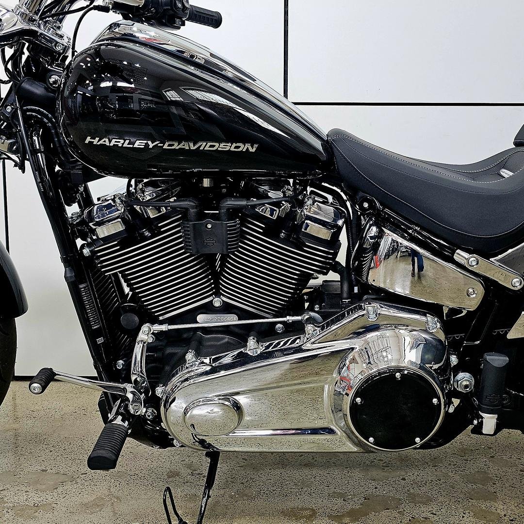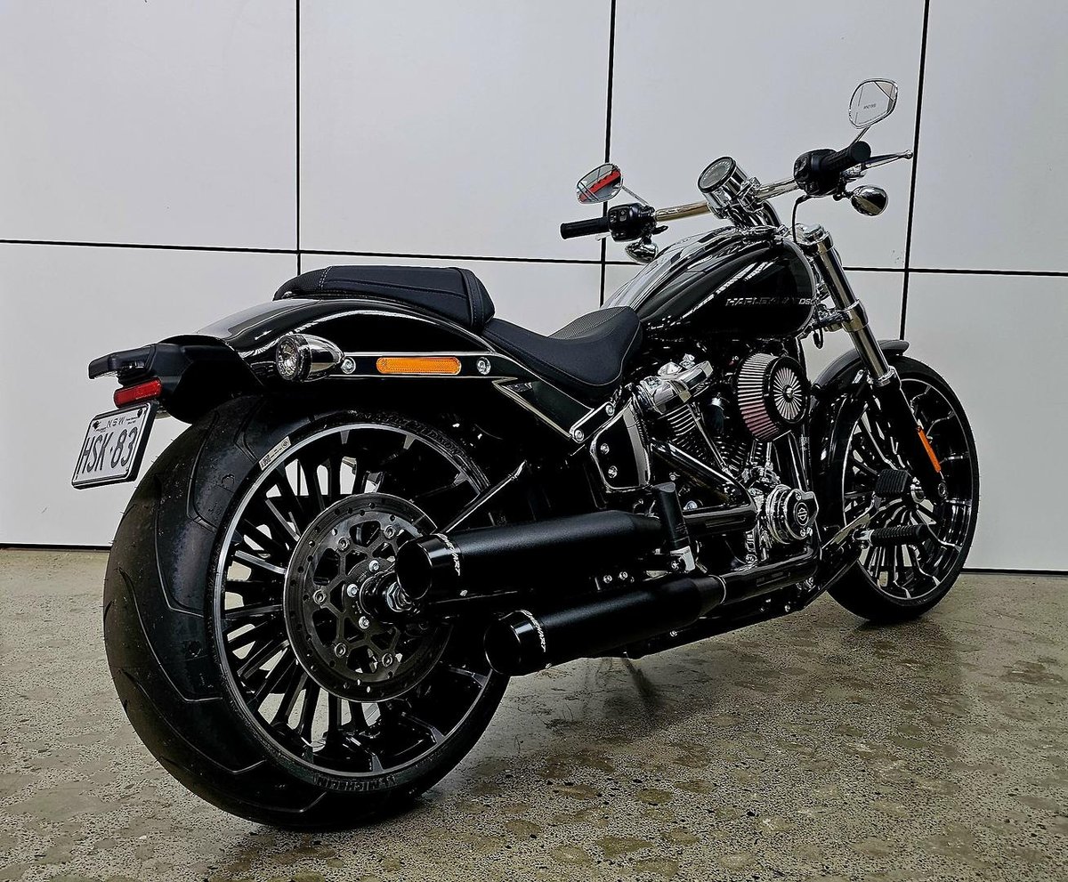 with a 240-rear tire, bobtail rear fender, long rake, straight handlebars, and a 21-inch front wheel, the Breakout marries classic chopper style with the performance of a Milwaukee-Eight® 117 Custom V-Twin Engine.