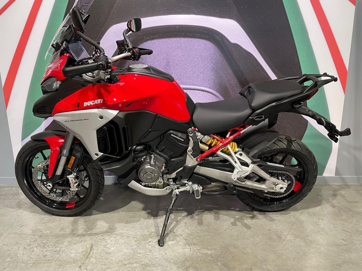 Touring ready, intuitive off-road, agile in the city, and with renewed sports attitude, the fourth generation of Multistrada is pure riding pleasure. Lightweight, compact and with the 170 hp of the V4 Granturismo, it promises a sporty and exhilarating ride on mixed surfaces. The highly reliable V4 Granturismo engine means that it is ready for long-range travel, with GPS integrated into the dashboard and an innovative front and rear radar system. The Multistrada V4 offers both rider and passenger unbeatable onboard comfort, adapting to all riding styles and routes. Equipped with the most advanced travel electronics, like front and rear radar with adaptive cruise control and blind spot detection systems, as well as fully integrated GPS and latest generation LED lighting.