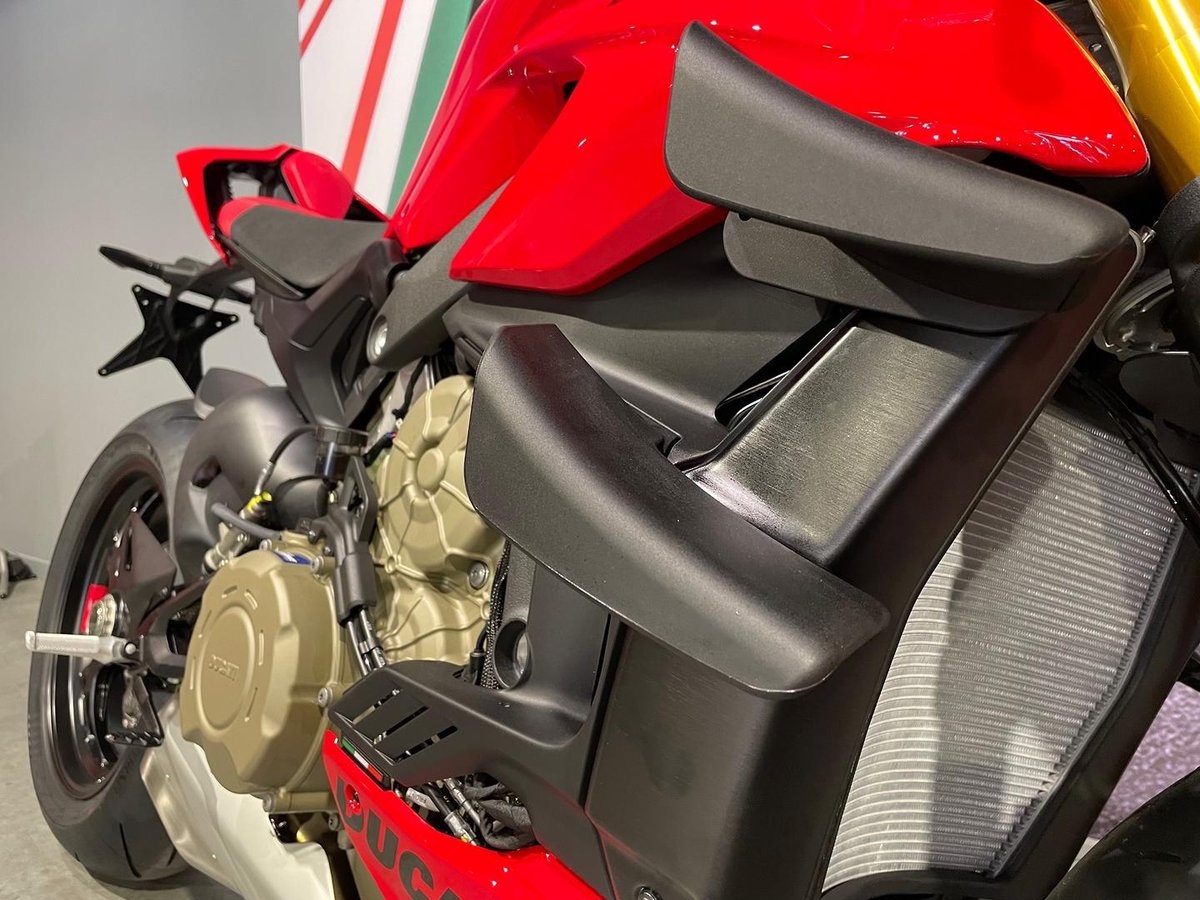 The natural evolution of the family is a bike that pushes the concepts of the "Fight Formula" even further, the key elements of which are the Panigale V4 stripped of the fairings, high and wide handlebars, 178 kg weight, 208 hp Desmosedici Stradale engine, biplane wings and latest generation electronic package.
