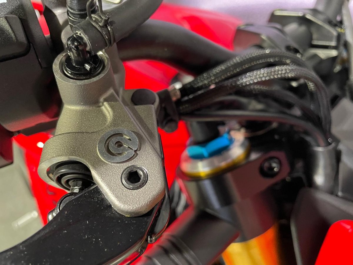 - Front Brake Description: Twin semi-floating Brembo discs; Radial mounted Brembo Monobloc Stylema M50 calipers; Hydraulic; Cornering ABS EVO