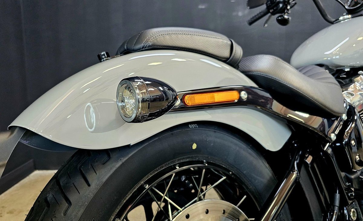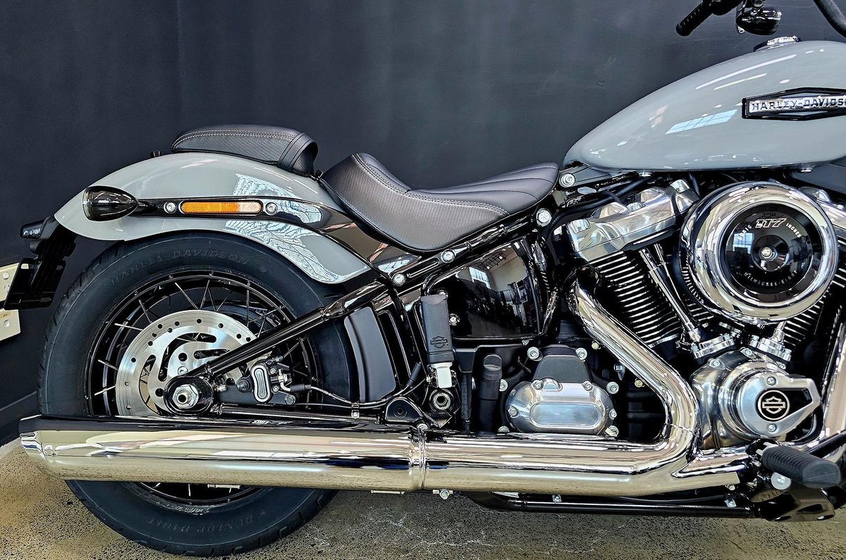 Classic hardtail style in a new Softail frame, a lightweight responsive ride with loads of torque you can feel with each twist of the throttle. Classic meets modern innovation with iconic 'stretched diamond' tank badge based on Willie G's design from 1966. Clear bright LEDs let you dominate the road, and laced wheels deliver a classic bobber silhouette. A new two into one exhaust enhances engine performance and a rear adjustable mono-shock keeps the ride smooth.