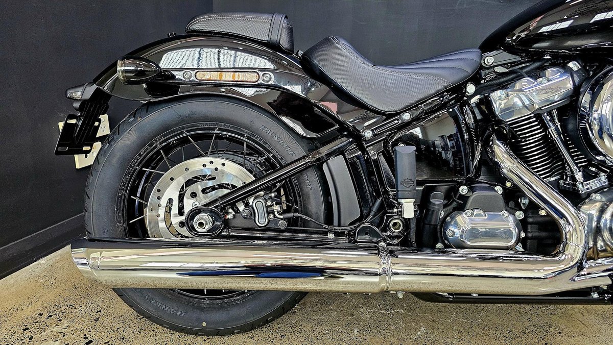 Classic hardtail style in a new Softail frame, a lightweight responsive ride with loads of torque you can feel with each twist of the throttle. Classic meets modern innovation with iconic 'stretched diamond' tank badge based on Willie G's design from 1966. Clear bright LEDs let you dominate the road, and laced wheels deliver a classic bobber silhouette. A new two into one exhaust enhances engine performance and a rear adjustable mono-shock keeps the ride smooth.