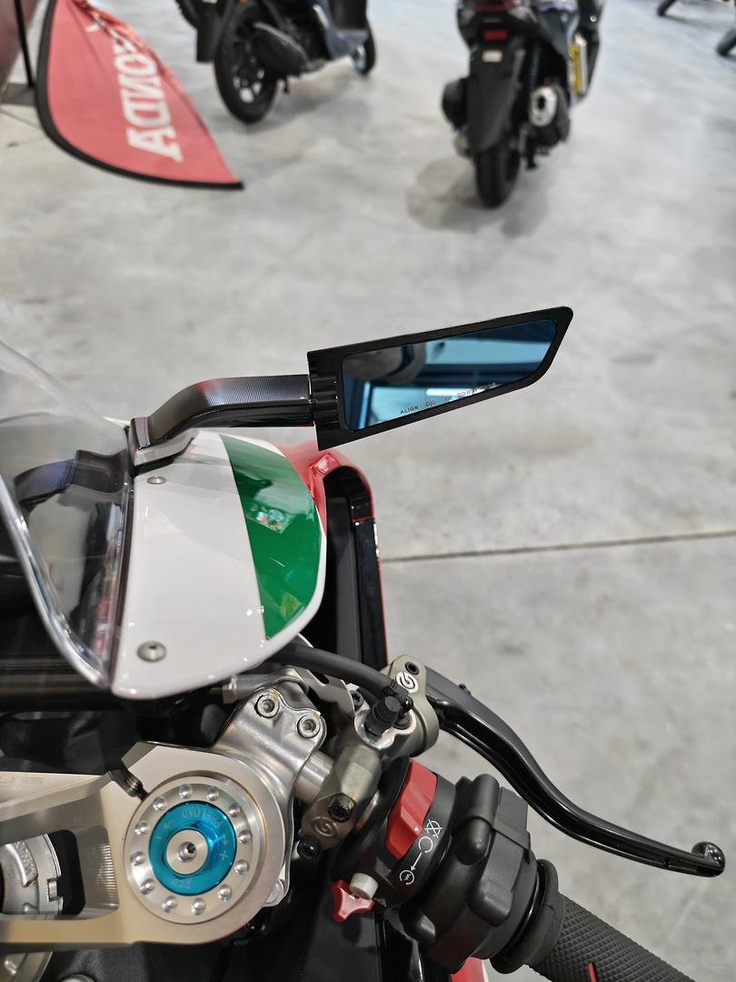Accessory mirrors, tail tidy and tank/rad protection already all sorted so just jump on, hang on and have the time of your life. The Bayliss edition also comes with Ohlins suspension as well as a unique livery as seen.