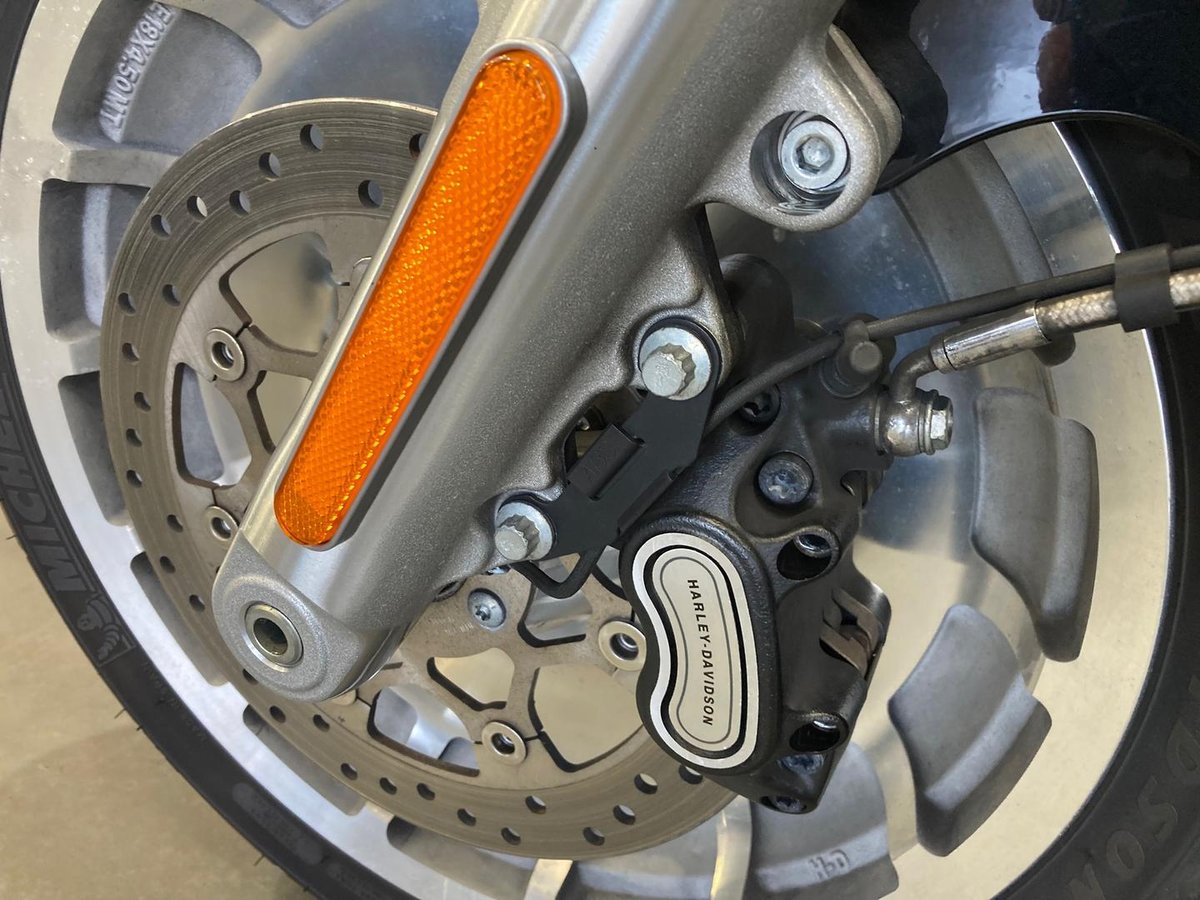 - Front Brake Description: Single Silver split 7-spoke floating rotor/disc; Fixed caliper; Hydraulic; ABS